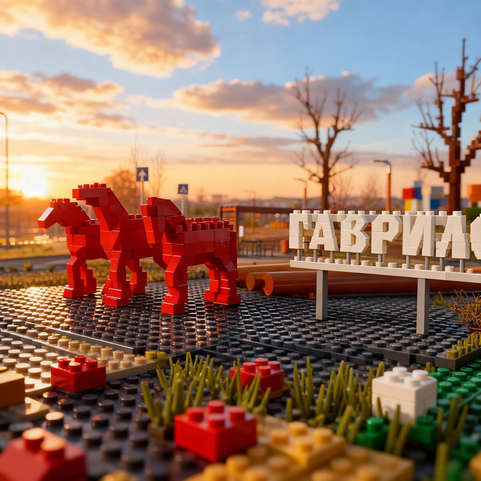 Преобразуй мою фотографию в мир LEGO. Воссоздай всю сцену в стиле гиперреалистичной диорамы LEGO: всё сделано из настоящих кубиков LEGO, пластин и минифигурок. Яркие пластиковые цвета, видимые соединения и шипы, глянцевая, но слегка текстурированная поверхность. НИКАКИХ реальных человеческих черт лица, текстур кожи или волос — только формы и материалы LEGO. Тёплое закатное освещение, глобальное освещение, объёмное освещение, глубина резкости, разрешение 4K, кинематографическое качество и высококачественные шейдеры (SEUS/BSL/RTX).