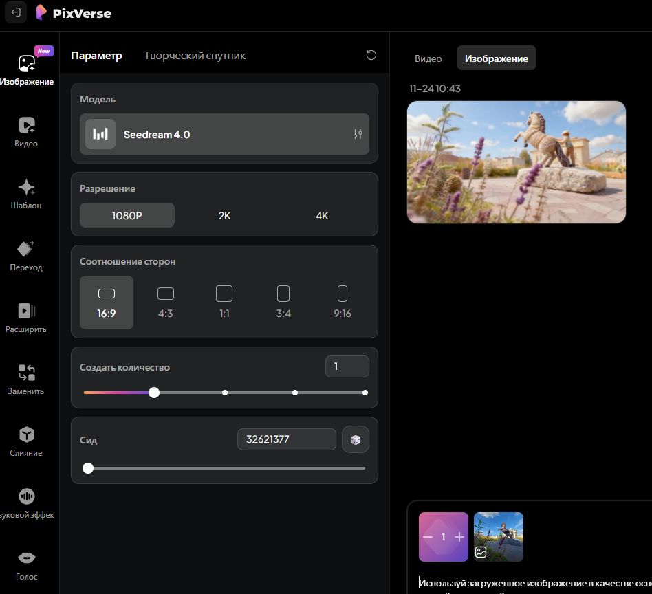 Но, конечно, с ограничениями. Нашел только 1 рабочий вариант: нейросеть PixVerse. Изначально она была заточена под видео, но сейчас функционал гораздо шире.