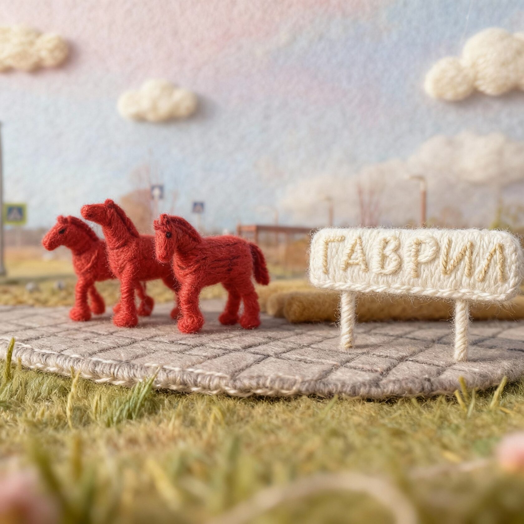 Используй загруженное изображение в качестве основного ориентира и создайте рукотворное произведение искусства из ниток, диораму из пряжи и фетра. Макрофотография, мягкий рассеянный свет, пастельная палитра, высокодетализированные волокна и стежки, уютная сказочная атмосфера и слегка уменьшенный масштаб, как в диораме.