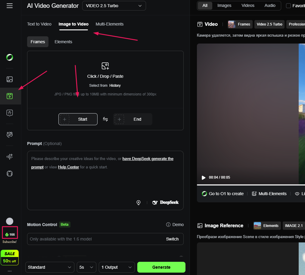 Пользоваться просто: нажимаете слева Меню, во всплывающем окне выбираете "Создать видео". Дальше либо генерируете с 0, либо "оживляете" картинку.