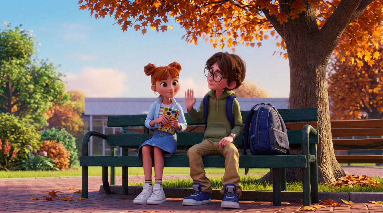 Промпт: Мальчик и девочка взялись за руки и улыбаются.