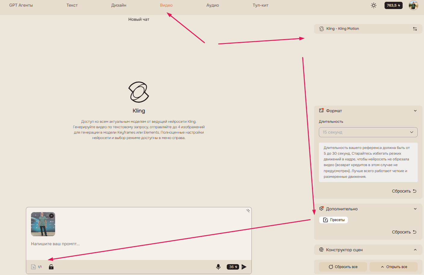 Поскольку сам Клинг дает совсем немного бесплатных токенов, я расскажу как сделать это в SYNTX AI - у них и бот в Телеграм и сайт с десятками нейросетей. Легко оплатить картой РФ, а минимальный тариф начинается в 890 руб в месяц.